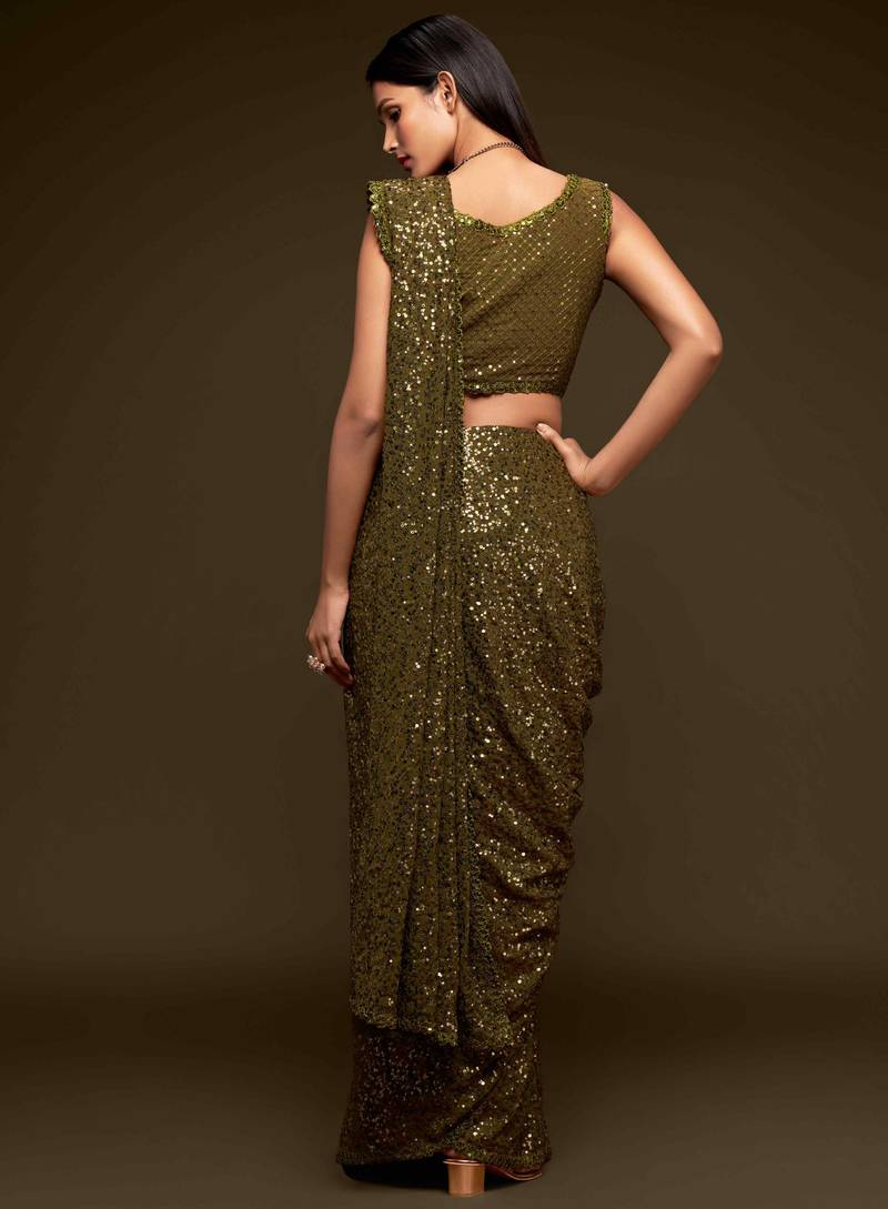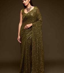 Olive embroidered georgette saree with blouse