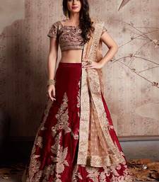 Maroon velvet silk lace work lehenga choli with net dupatta