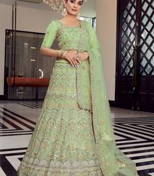 Pista color organza base mirron & plain work lehenga choli with dupatta