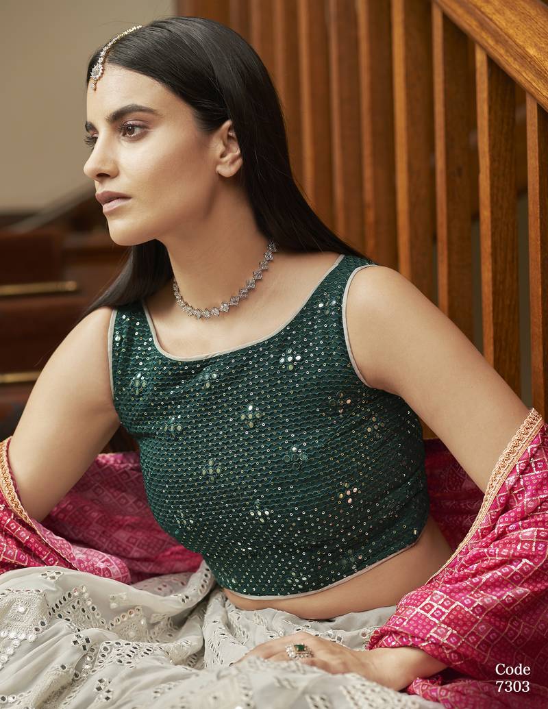 Product Description | Lehenga Detail: Color: Grey; Fabric: Organza; Stitching Type: Semi Stitched; Waist Size Can Customize Up To 42 Inch; Hip Size: 46 Inch; Length: 42 Inch; || Blouse Detail: Color: Green; Fabric: Georgette; Stitching Type: Unstitched; Length: 0.80 Meter; Bust Size Can Customize Up To 42 Inch; Sleeve Type: Half Sleeve; Neck Type: Round Neck; || Dupatta Detail: Color: Pink; Fabric: Chinon Silk; Size: 2.50 Meter; || Work Detail Sequins, Gota, Mirror,; || Occasion: Wedding & Party Wear; |