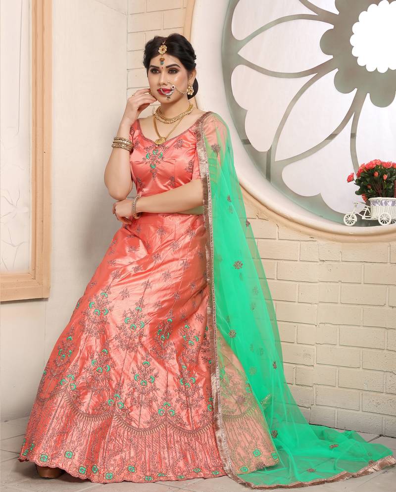 Product Name | Prepossessing Peach Embroidered Satin Semi Stitched Lehenga | |