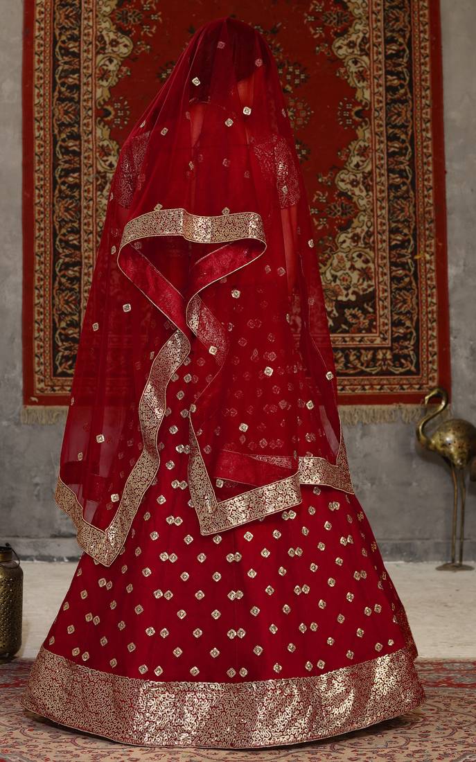 Product Description | Lehenga Color: Red; Choli Color: Red; Dupatta Color: Red; Lehenga Fabric: Net; Choli Fabric: Net; Dupatta Fabric: Net; Lehenga Work: Sequince Embroidered Work; Choli Work: Sequince Embroidered Work; Dupatta Work: Sequince Embroidered Work;Size: Upto 42 Bust And Waist; Choli Length: 1 Mtr; Lehenga Length: 42 Inch; Dupatta Length: 2.40 Mtr; Occasion: Wedding & Party Wear; Look: Bridal |