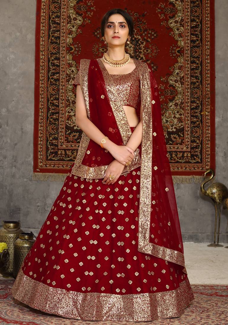 Product Name | Red Sequins Embroidered Net Semi Stitched Lehenga For Wedding | |