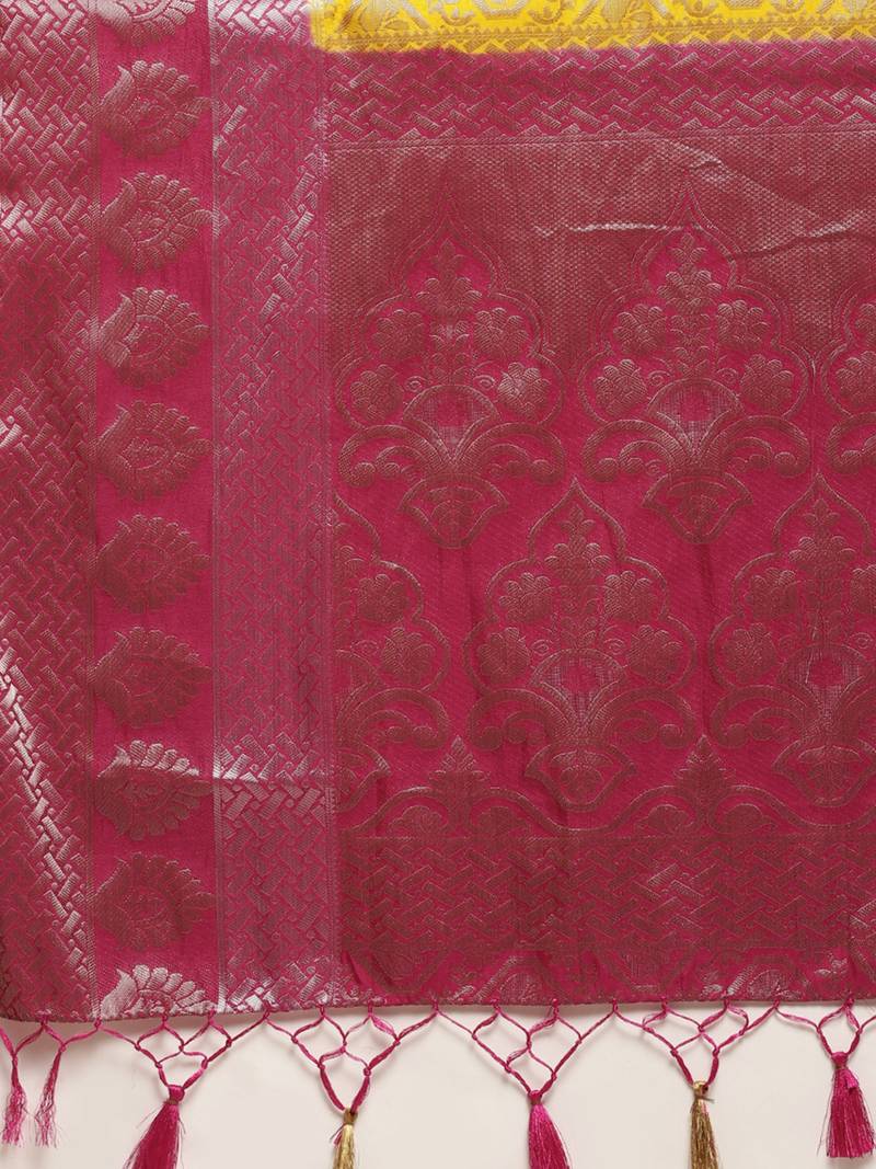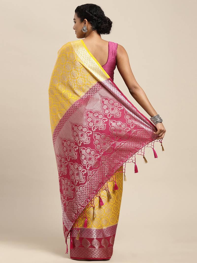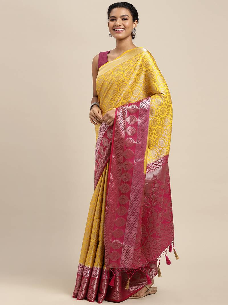 | Product Description | Gold Color Traditional Saree, With Woven Mixture Of Zari And Gicha Thread Design All Over , Has Zari Woven Border And Pallu And Tussel Work At The End , Comes With Pink Color Contrast Unstiched Blouse (Included In Sarees Length 5.40 Mtr+.80 Cm) |