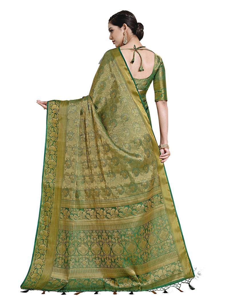 | Product Description | Olive Color Traditional Saree, With Woven Embose And Zari Design All Over , Has Zari Woven Border And Pallu And Tussel Work At The End , Comes With Olive Color Running Unstiched Brocade Blouse (Included In Sarees Length 5.40 Mtr+.80 Cm) |