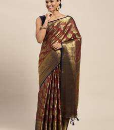 Navy blue woven art silk saree with blouse