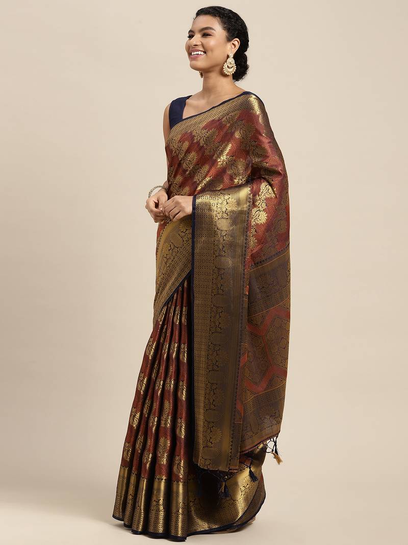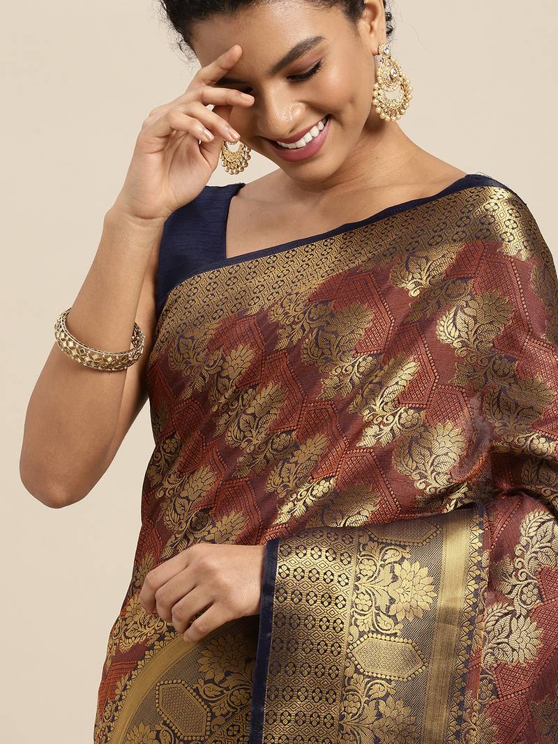 | Product Name | Navy Blue Woven Art Silk Saree With Blouse | |