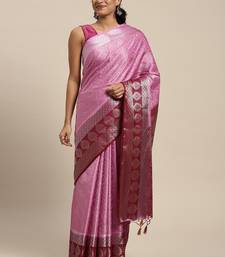 Pink woven art silk saree with blouse