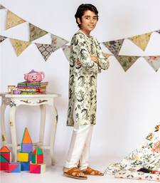 Mint Jannat Print Silk Kurta With Off White Cotton Silk Churidar
