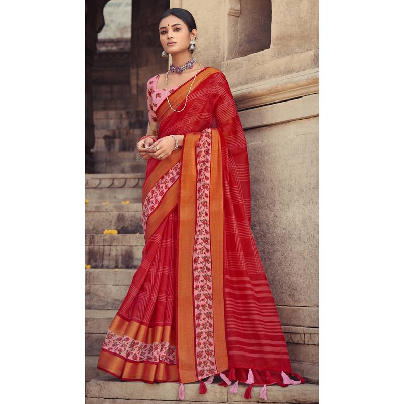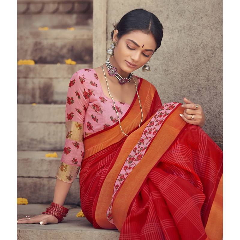 | Product Name | Red Printed Cotton Silk Saree With Blouse | |